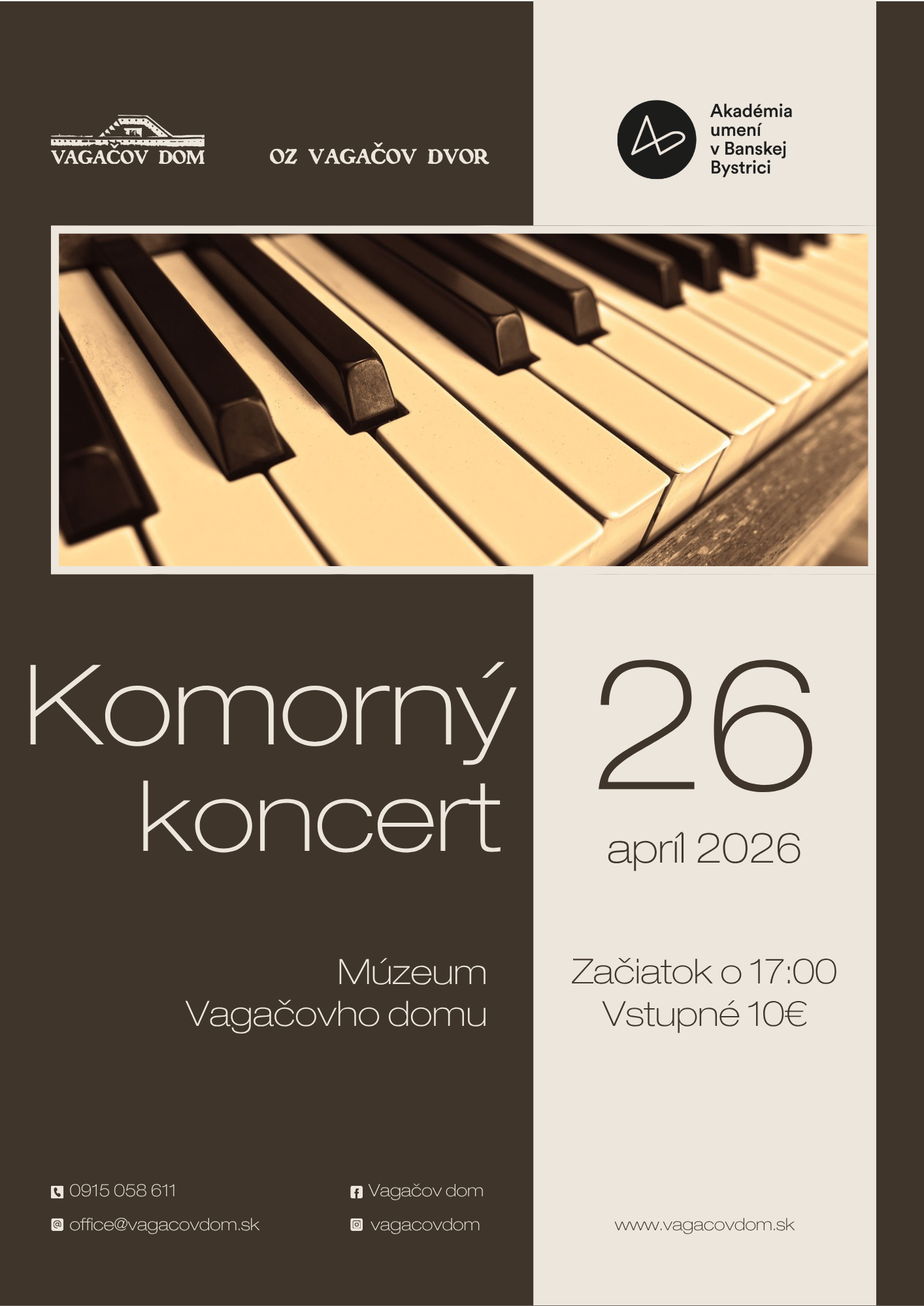 Pozývame vás na príjemný hudobný večer v komornej atmosfére, kde sa predstavia talentovaní študenti Akadémie umení v Banskej Bystrici.